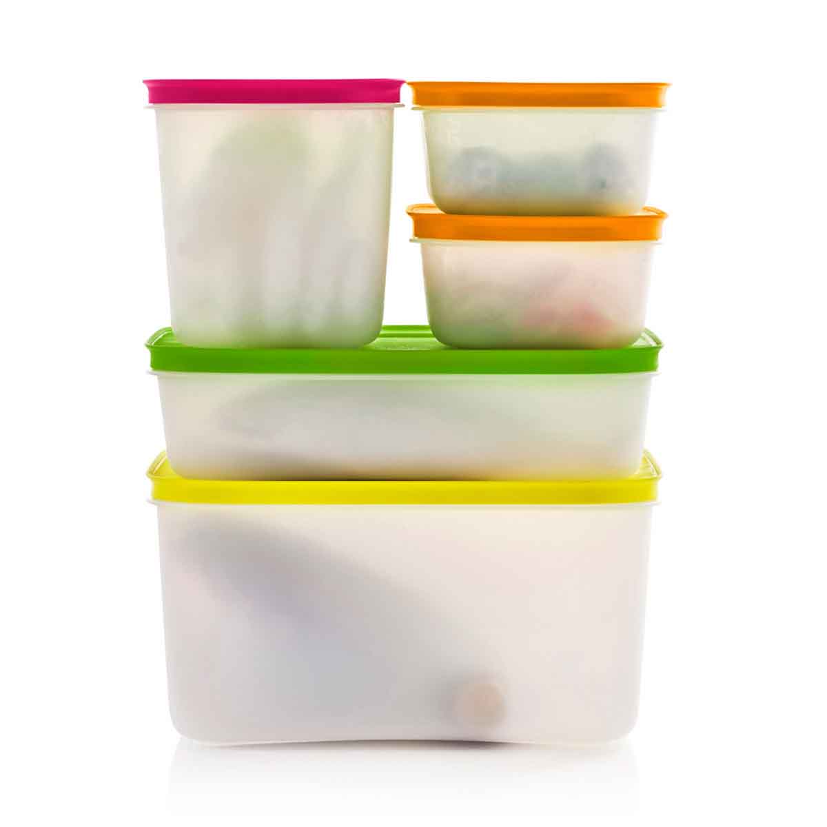 Основания и крышки складываются друг в друга, что позволяет экономить пространство при хранении пустых контейнеров в кухонном шкафу.450 мл — порционная заморозка готовых блюд, ягод и фруктов, овощных пюре, кукурузы и зелёного горошка.