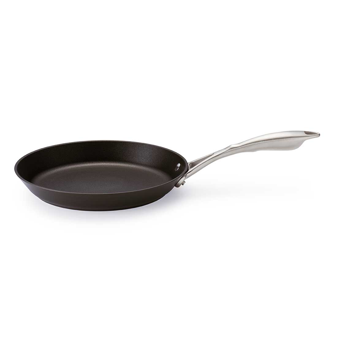 Сковорода изготовлена из литого твёрдоанодированного алюминия, обеспечивающего быстрое нагревание и экономию электричества за счет высокой теплопроводности.