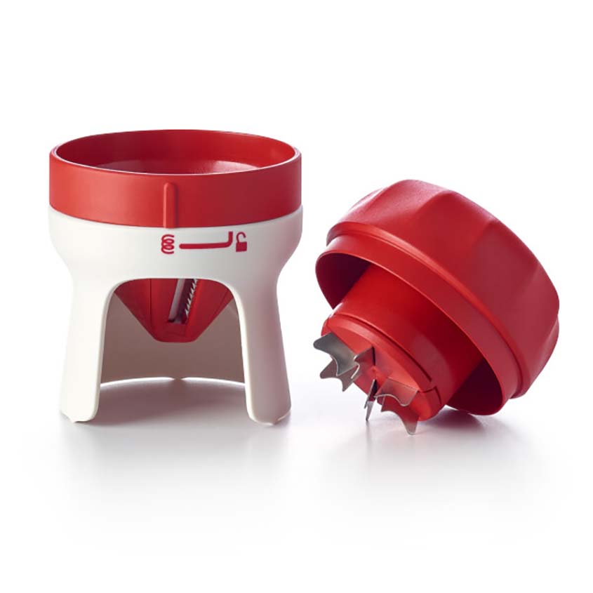 Защита-держатель защищает руки от контакта с лезвиями, насадите держатель на овощ и поверните его для измельчения.
