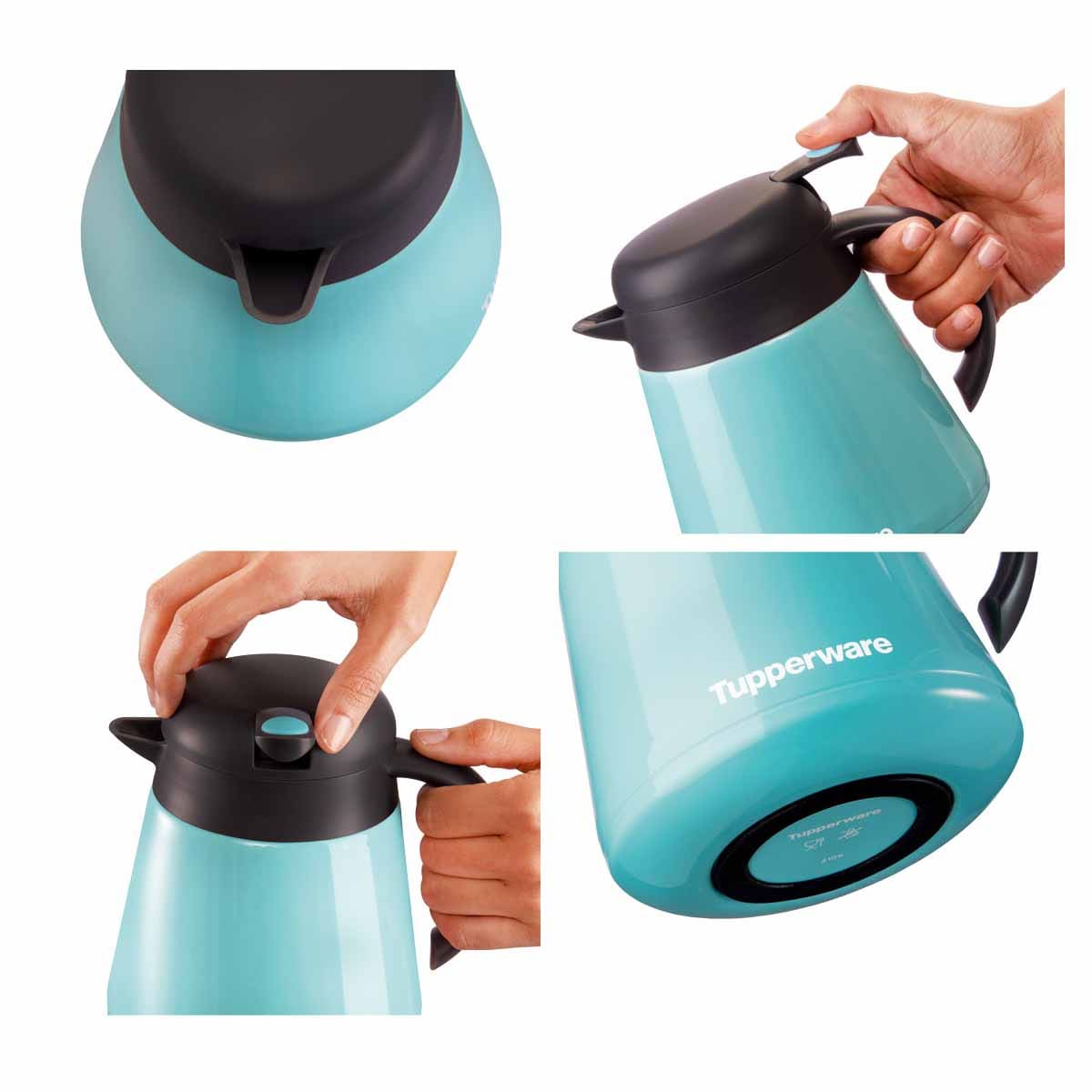 В исходном положении фиксатора носик кувшина закрыт, что позволяет сохранять температуру напитка дольше, и обеспечивает 100% герметичность.