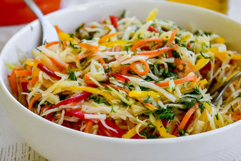 Капусту и сладкий перец шинкуем на терке-шинковке "Мандолина". Лук нарезаем полукольцами. Морковь и яблоко нарезаем соломкой.